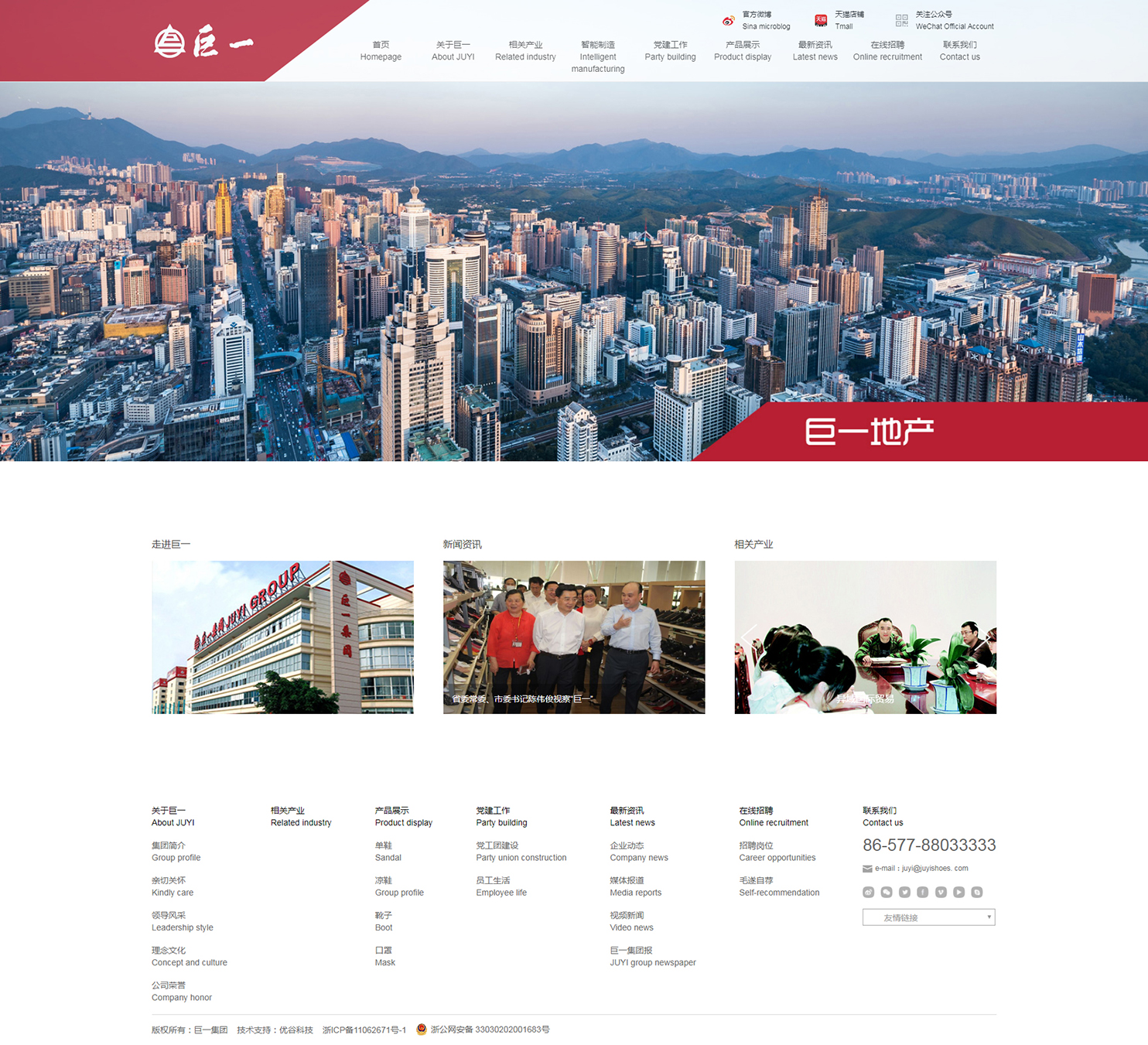 巨一集團始創(chuàng)于1988年,現(xiàn)已發(fā)展為集鞋類、口罩制造,醫(yī)療器械、國際貿(mào)易、房地產(chǎn)、商場、酒店等于一體的無區(qū)域企業(yè)集團。員工5000多名。企業(yè)先后獲得中國鞋類出口基地龍頭企業(yè)、國家高新技術(shù)企業(yè)、海關(guān)AEO高級認證企業(yè)、中國馳名商標、中國真皮鞋王、省AAA級“守合同重信用”企業(yè)、浙江名牌、浙江出口名牌、浙江省質(zhì)量獎、溫州市領(lǐng)軍企業(yè)等榮譽稱號。黨和國家領(lǐng)導(dǎo)人習(xí)近平、張德江、賈慶林、羅干等先后蒞臨公司視察或親切接見公司領(lǐng)導(dǎo)。