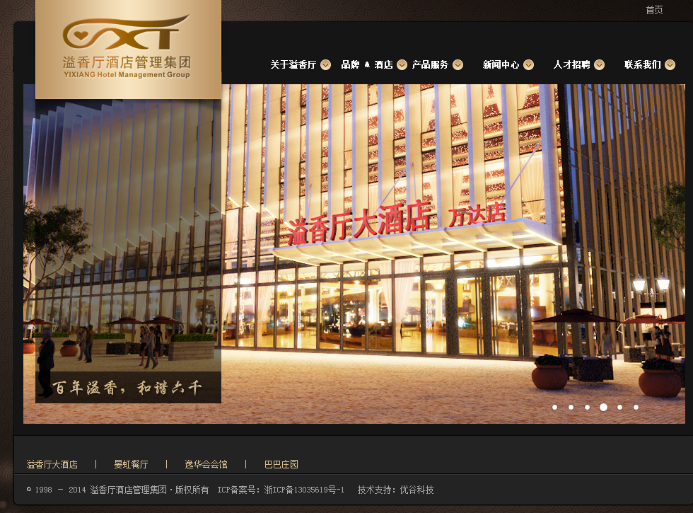 溢香廳酒店管理集團(tuán)是從事高端餐飲的大型連鎖企業(yè),由董事長(zhǎng)柯五一先生創(chuàng)辦,始創(chuàng)于1988年,享譽(yù)溫州27年?,F(xiàn)旗下?lián)碛幸缦銖d大酒店、新溢香廳大酒店、溢香廳正茂大酒店、逸華會(huì)國(guó)際俱樂部、溢香廳萬達(dá)大酒店、晏虹餐廳萬達(dá)店、晏虹餐廳甌江店、巴巴莊園,逐步發(fā)展為多品牌、連鎖型的高端餐飲管理企業(yè)集團(tuán)。